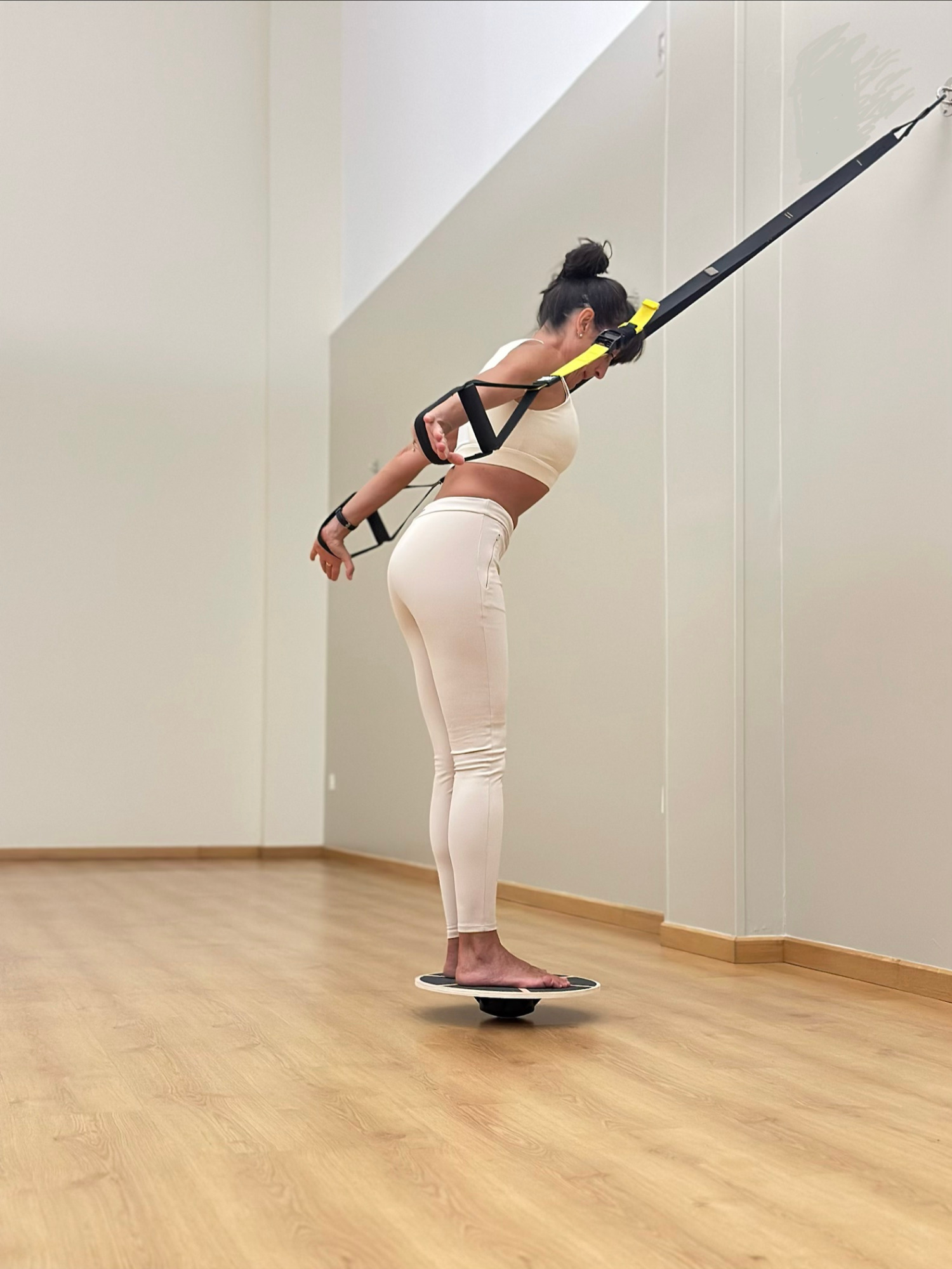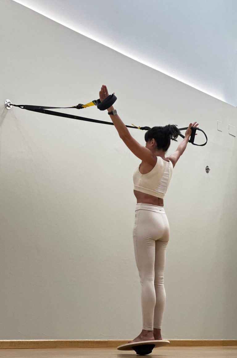 El trabajo en suspensión con elementos transmisores de tensión junto con una impecable técnica postural y respiratoria permiten mejorar simultáneamente el tono y la fuerza dedicando menos tiempo y reduciendo el riesgo de lesión.